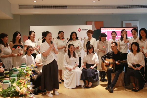 活动现场,“暖心妈妈合唱团”以一首温暖人心的《萱草花》,歌唱了她们对美好生活的追求与向往、对同行社工妈妈们的敬意和祝福;专业茶艺老师以茶道悟人生之道,与社工妈妈们分享了泡茶、品茶、赏茶等茶道文化;专业花艺老师以花语悟生活之美,与社工妈妈们共赏鲜花之美、共启创意插花之旅——“温柔是你,坚强也是你”,从歌唱、茶艺和花艺的分享,到结合自己的公益经历畅谈感悟,社工妈妈们度过了幸福感“爆棚”的一个上午。