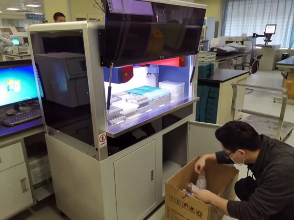 yabo鸭脖官网公司检测方案顺利落地武汉某医疗机构,检测结果得到医生认可。深夜,和医护人员一起享受实验成功后的喜悦,吃起早已凉了的盒饭。